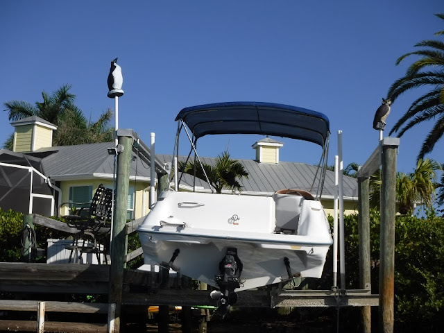 Today was perfect for heading back down to the St. Lucie Inlet and the clear water of our new found mangrove island. This time we brought toys with us in Coqui...snorkeling gear and my kayak! We went around to the west side of one of the little islands and had a blast swimming and paddling. Dave even found quite a few fish along the mangrove roots, including several large snook.