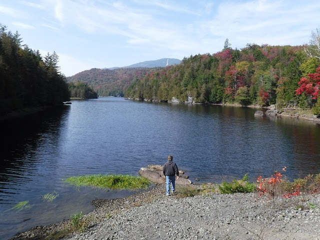 Then it was on to what is left of Adirondac, but I didn't take photos of the remaining house chimneys, since I posted that before. We did take a nice hike to Lake Henderson with its gorgeous view of Henderson Mountain and the changing color of the leaves. There must have been a huge rockslide on the mountain since you can see the bare spot in the distance. You can portage your kayaks and gear the approx. half mile to the water and go camping on one of the primitive campsites on the lake. We watched three guys do just that, but they had to take several trips since all their gear and the guys wouldn't fit in the kayak and canoe at the same time.